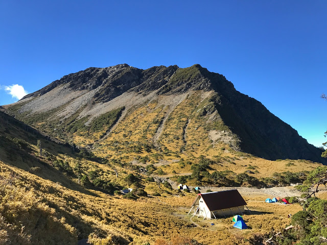 直到雲霧漸漸散去,沖了一杯咖啡,走出帳篷外欣賞一下當天終於露臉的南湖大山.還記得那天路上,南湖大山總是躲在雲霧之中,還開玩笑的說他真害羞.