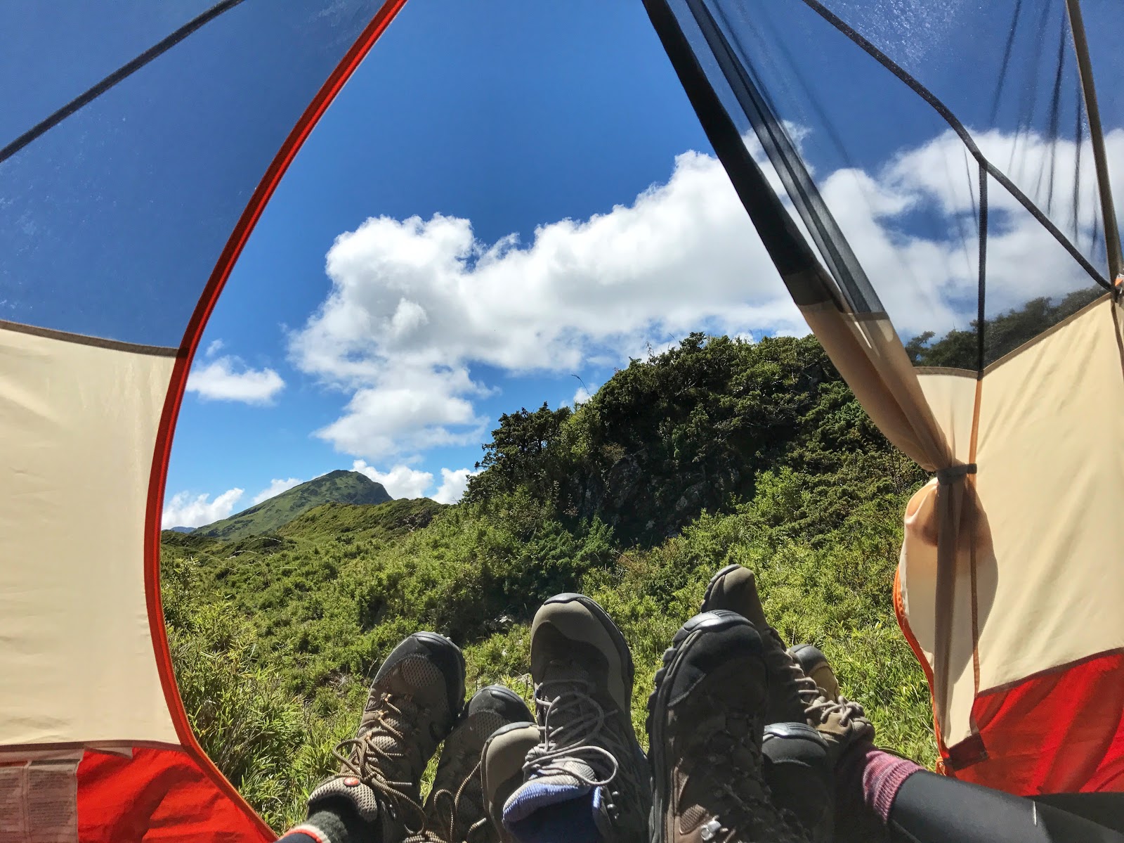 2016年11月南湖大山,在下南湖圈谷的碎石坡段,突如其來一陣大雨,配上快陣亡的登山鞋,一度崩潰.一到圈谷後,包包卸下,即刻呈現廢物狀態.一邊期待晚餐,一邊期待天黑後可能出現的水鹿.