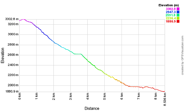從登山口0K到桃山主峰(3325m)4.5K一路陡上,上升大約1400m.爬升幾段後,還是忍不住意志薄弱了一下.還好抵達桃山頂後,都被群山環繞的開闊視野給療癒了,三六九山莊、雪山圈谷、雪山主峰、雪山北峰、品田、南胡大山、中央尖山、畢祿山、奇萊都清晰可見.