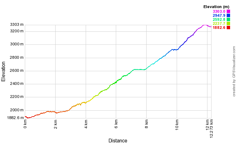 從登山口0K到桃山主峰(3325m)4.5K一路陡上,上升大約1400m.爬升幾段後,還是忍不住意志薄弱了一下.還好抵達桃山頂後,都被群山環繞的開闊視野給療癒了,三六九山莊、雪山圈谷、雪山主峰、雪山北峰、品田、南胡大山、中央尖山、畢祿山、奇萊都清晰可見.