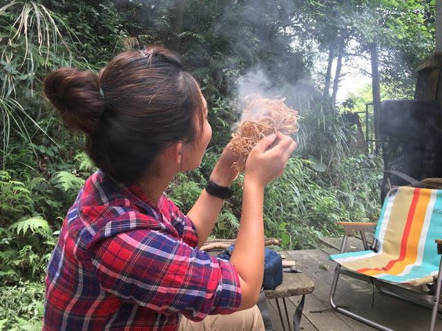 我想野營的樂趣就在於學習這些古老的技藝,透過這些不方便的方式,真正的與大自然產生連結,因為生火而了解各種木頭的特性,也才發現每種木頭冒煙時所產生的香味也全然不同.