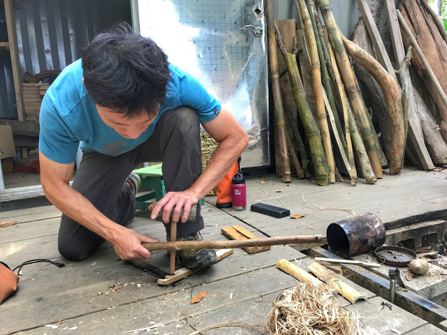 竹籤也是自己劈竹子削成的,可惜肚子太餓沒拍到削竹籤過程