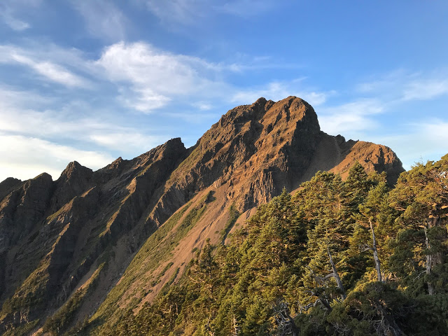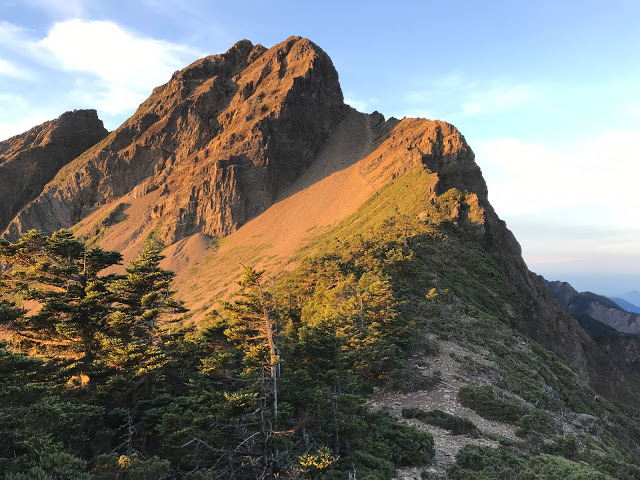 | 被陽光曬得金黃的玉山主峰 |