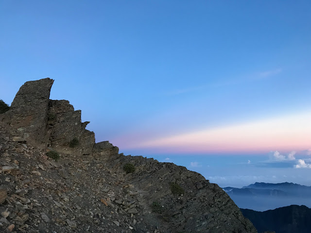 | 摸黑走這段陡下碎石坡真的滿刺激的,天快亮才拿出相機記錄一下 |