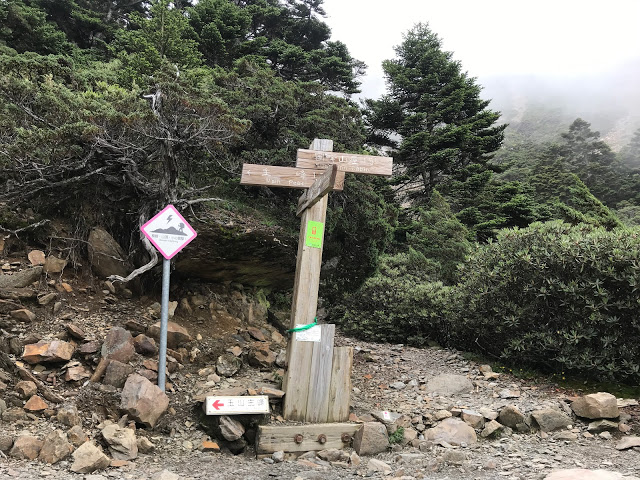 | 主南岔路,主峰左轉,圓峰山屋擇右 |