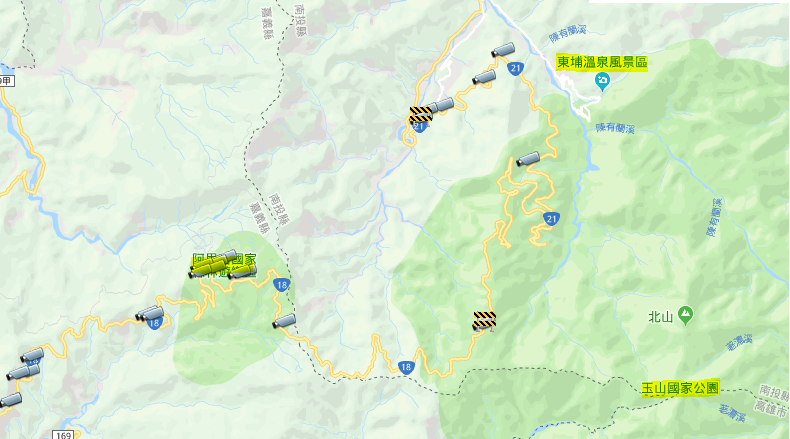 台21線110K-145K(草坪頭至塔塔加),部份路段邊坡仍有落石危險且夜間山區無路燈,故採預警性封閉該路段,每日下午17:30至翌日早上07:00管制封閉。