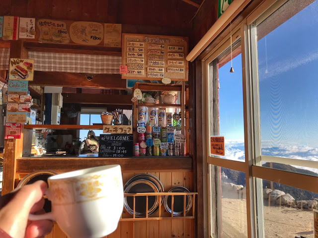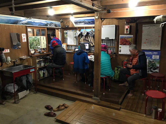 這趟行程因為潭美颱風緊跟著我們腳步從台灣來到日本,晚上吃飯時窗外原本開闊的山景已經變成一片白牆,大家開始不停上網確認颱風動態,畢竟隔天的行程是要前往槍岳.