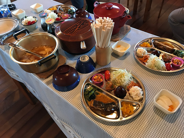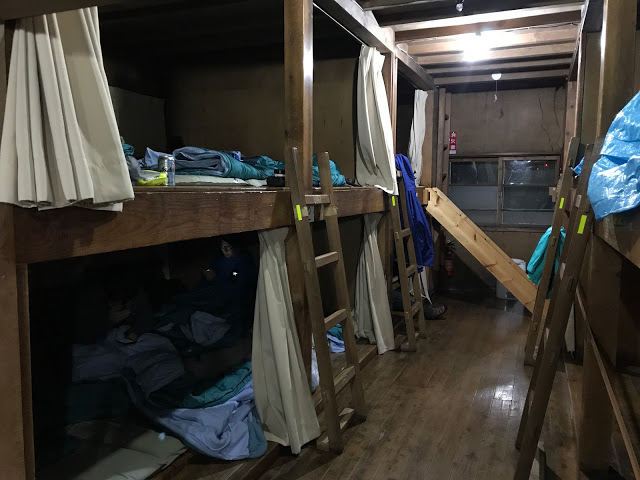 這趟行程因為潭美颱風緊跟著我們腳步從台灣來到日本,晚上吃飯時窗外原本開闊的山景已經變成一片白牆,大家開始不停上網確認颱風動態,畢竟隔天的行程是要前往槍岳.