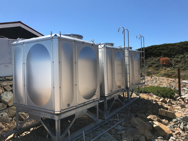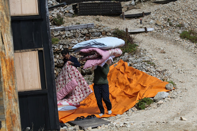 離開大天井ヒュッテ前,剛好看到員工在搬運曬好的棉被.