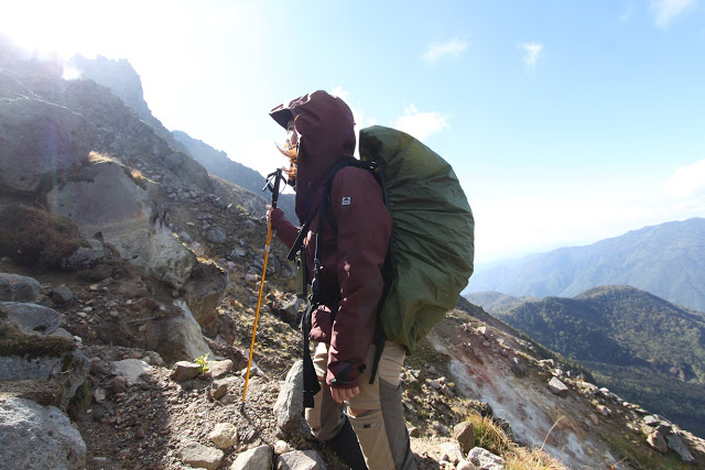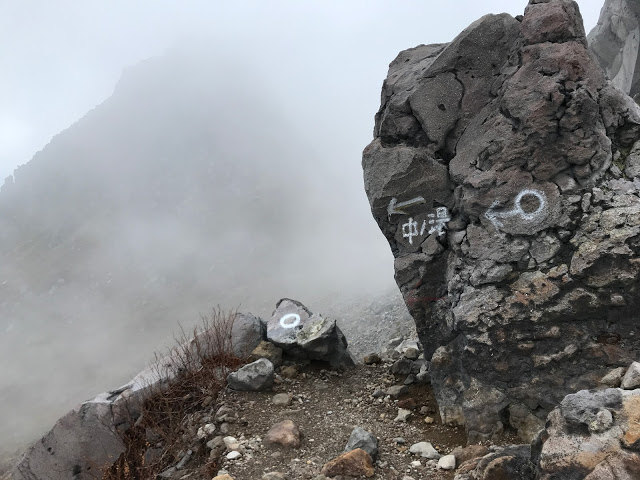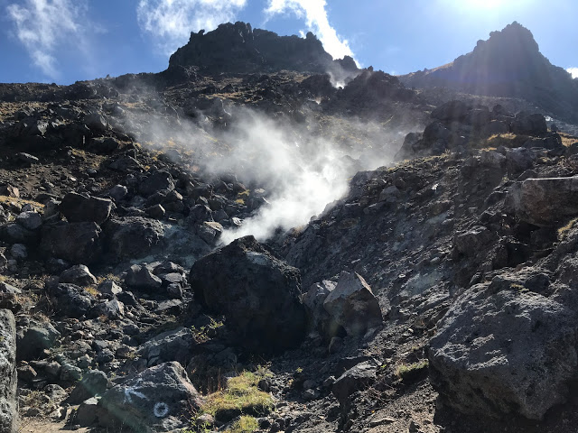 不斷冒出白煙的石縫,沿途瀰漫著硫磺的味道,眼睛閉上還以為在陽明山小油坑,但是難度是翻倍的.