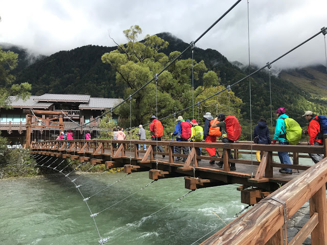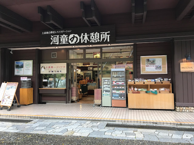 8:15am 在上高地稍微休息一下,快速的逛了一圈商店補給乾糧,感受一下這裡的悠閒氛圍.河川兩側有許多餐飲及住宿,也是日本近期很熱門的秘境景點.純旅遊的話滿推薦可以來這邊附近走走晃晃.