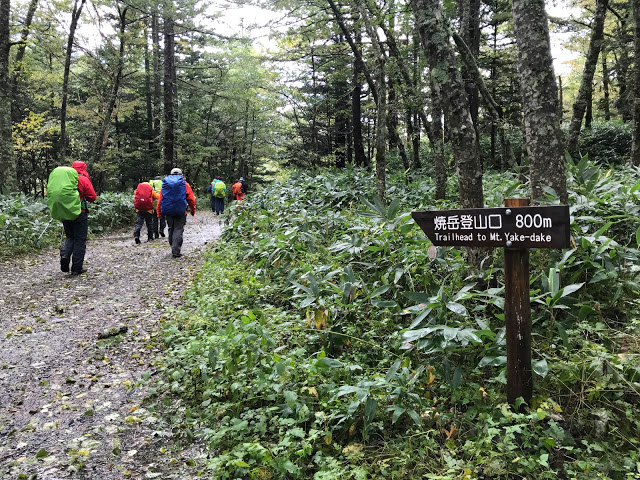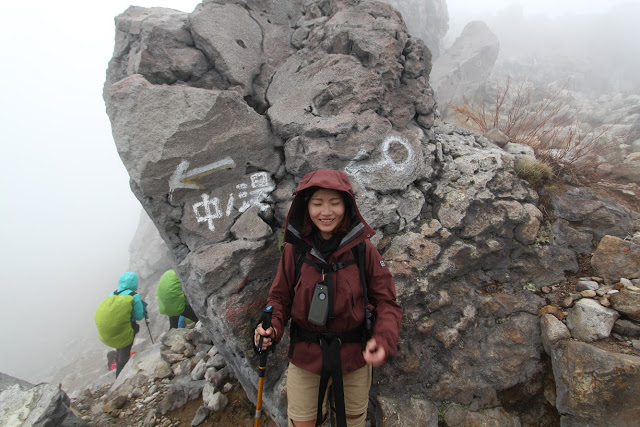 吃完早餐後7:00am出發最後一天的縱走行程.查詢氣象的結果顯示天氣會在9:00am後轉晴,一踏出明神館,再度感受到日本氣象預報200%的準確度,乖乖的穿上雨衣.今天路途將近8小時的漫漫長路,先撐過這2小時吧.