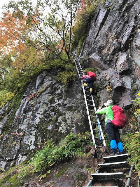 遠離觀光勝地,11:33am抵達午餐預訂地點,在水流成河的燒岳小屋外享用明神館的飯糰.因為是縱走的最後一座山,前一天晚上又像慶功宴一般放鬆,大家似乎錯估了燒岳的難易度,接下來還有很長一段爬升等著我們.