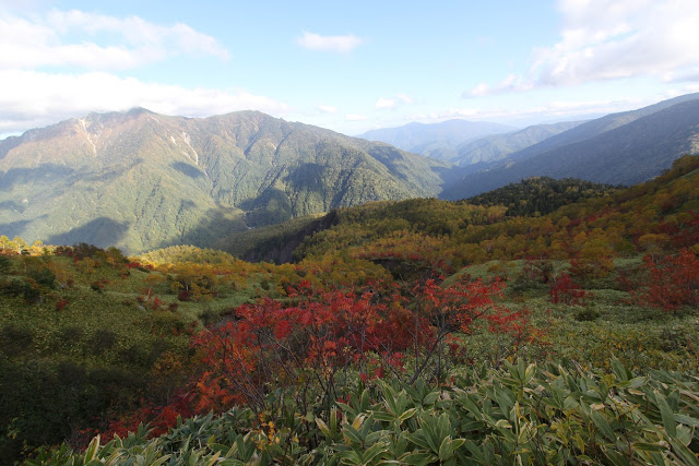 原本以為一路下坡會輕鬆許多,沒想到大夥又低估了燒岳的難易度.從這最後一片美景一路到中之湯溫泉的這段樹根爛泥路,應該是此趟行程感覺最遠最辛苦的一段路,以至於沒有人拿起相機拍照,還有隊友發生海市蜃樓的鬧劇.以為看到了公路,卻沒有公路;以為看到了白色建築物,卻又沒有白色建築物.