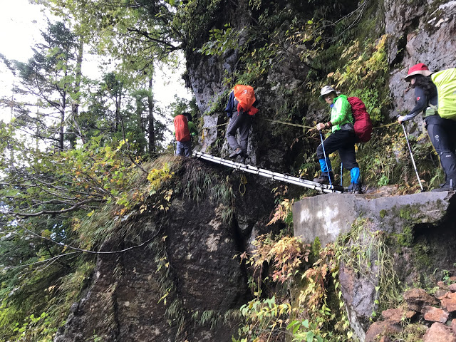 可能前幾天颱風的關係,從燒岳登山口一直到燒岳小屋路途中,像溯溪一樣沿著小溪流而上,不時也出現台灣中級山那般泥濘.