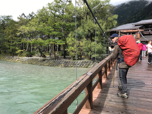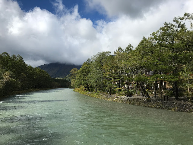 8:15am 在上高地稍微休息一下,快速的逛了一圈商店補給乾糧,感受一下這裡的悠閒氛圍.河川兩側有許多餐飲及住宿,也是日本近期很熱門的秘境景點.純旅遊的話滿推薦可以來這邊附近走走晃晃.
