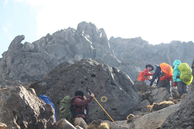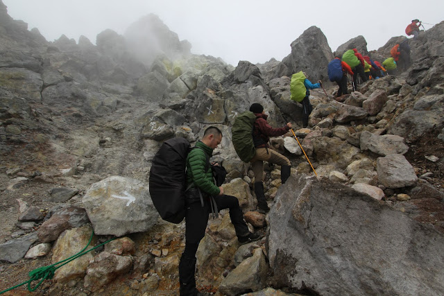 不斷冒出白煙的石縫,沿途瀰漫著硫磺的味道,眼睛閉上還以為在陽明山小油坑,但是難度是翻倍的.
