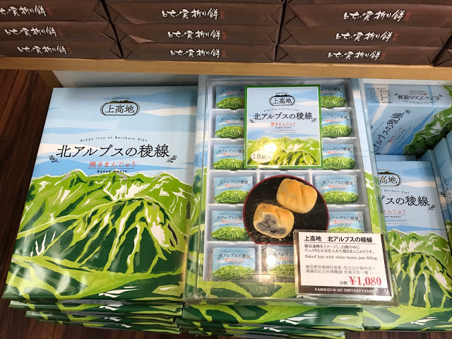上高地有很多特色紀念品可以購買,差點迷失在商店裡,不過理智告訴我等一下還有行程要走,沒有人想背著這些盒子上燒岳啦,抱歉囉.雖然你們長的好看又好吃.