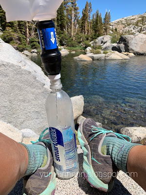 為了測試濾水器,我們剛上步道時一個人用Sawyer Squeeze,另一個人使用Sawyer Micro.Sawyer Squeeze濾完了2公升,Sawyer Micro才濾一半!