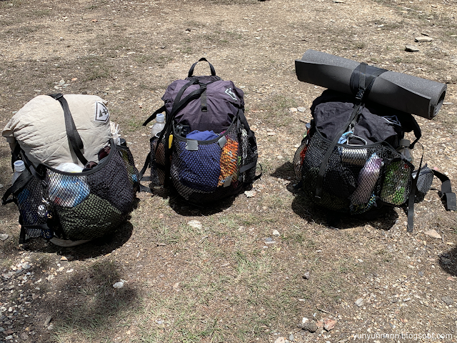 這次背包基本重量(不含水, 食物)5.7kg,加食物7.6kg.同行隊友背包總重大約8kg上下.輕量化雖然斤斤計較,但過程不就是進行一場段捨離,若能在生活中實踐,那麼登山也行.只要走得開心,裝備挑自己喜歡的就好,一切都沒有標準答案.