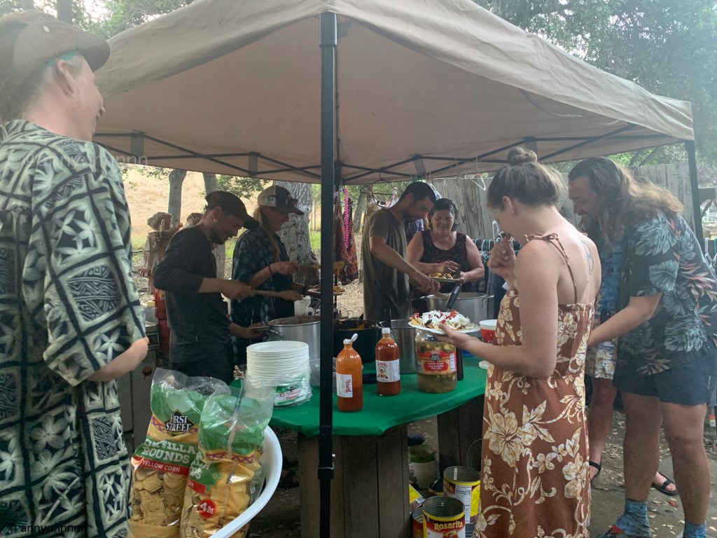 來到Casa de Luna第一件事,就是換上主人規定的招牌的花襯衫.晚餐後,徒步者必須輪流秀出自己最棒的舞步,來獲得自己的PCT Bandana方巾.