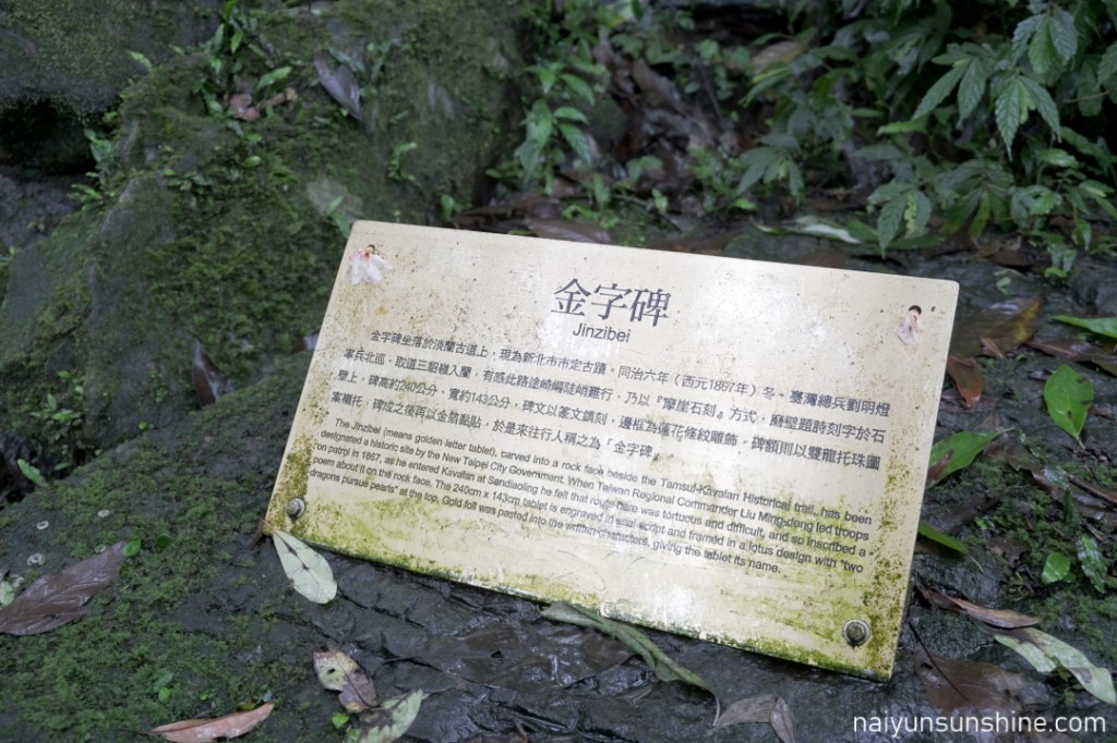 同治六年(1867)冬,台灣鎮兵劉明燈率兵北巡,由淡入蘭,有感於先民開疆拓土之艱辛, 與山道雄偉磅礡之風景,乃題下「金字碑」、 「虎字碑」、「雄鎮蠻煙碑」供人瞻仰。