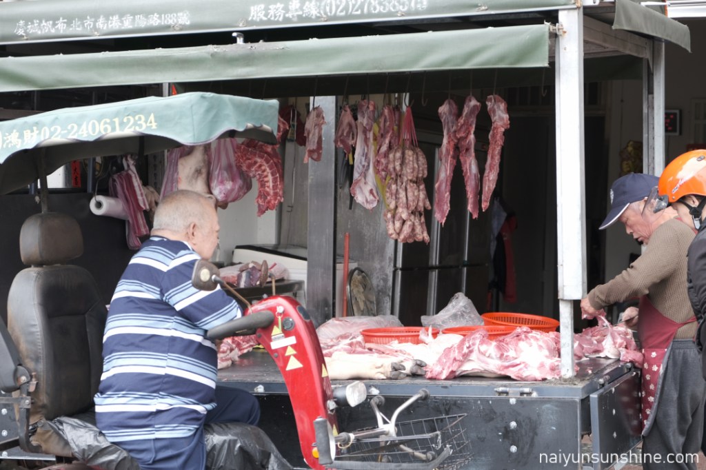 有機書店的郭姐告訴我們貢寮連一間便利商店都沒有,菜車和肉車會在小巷中穿梭叫賣.沒想到才剛走出貢寮老街,就看見了肉車.