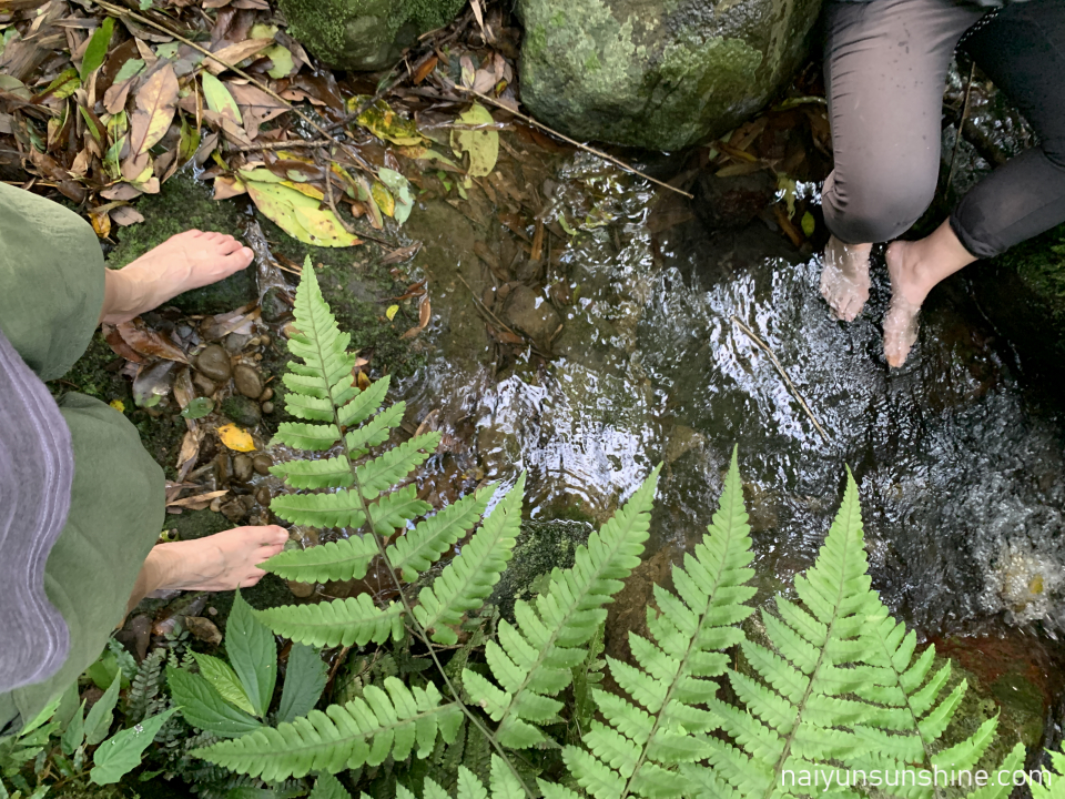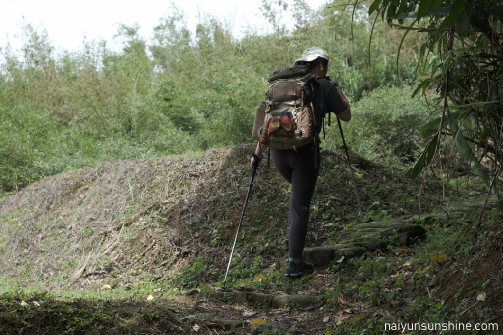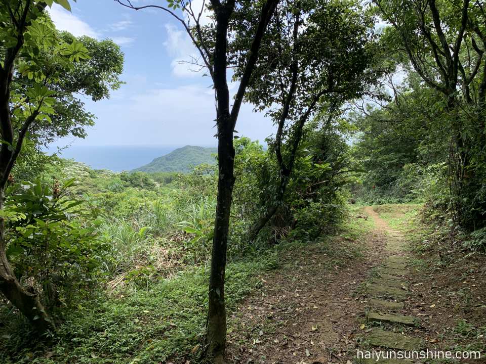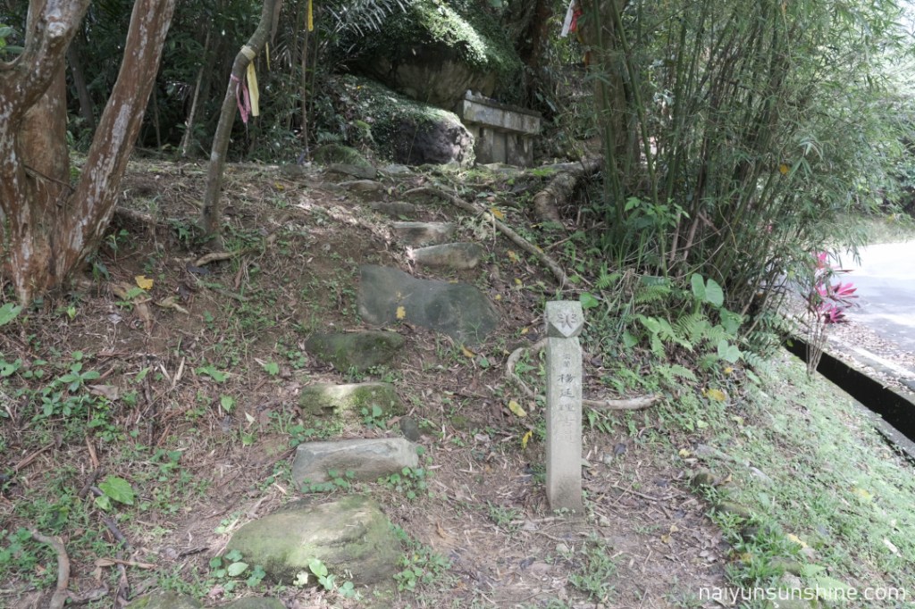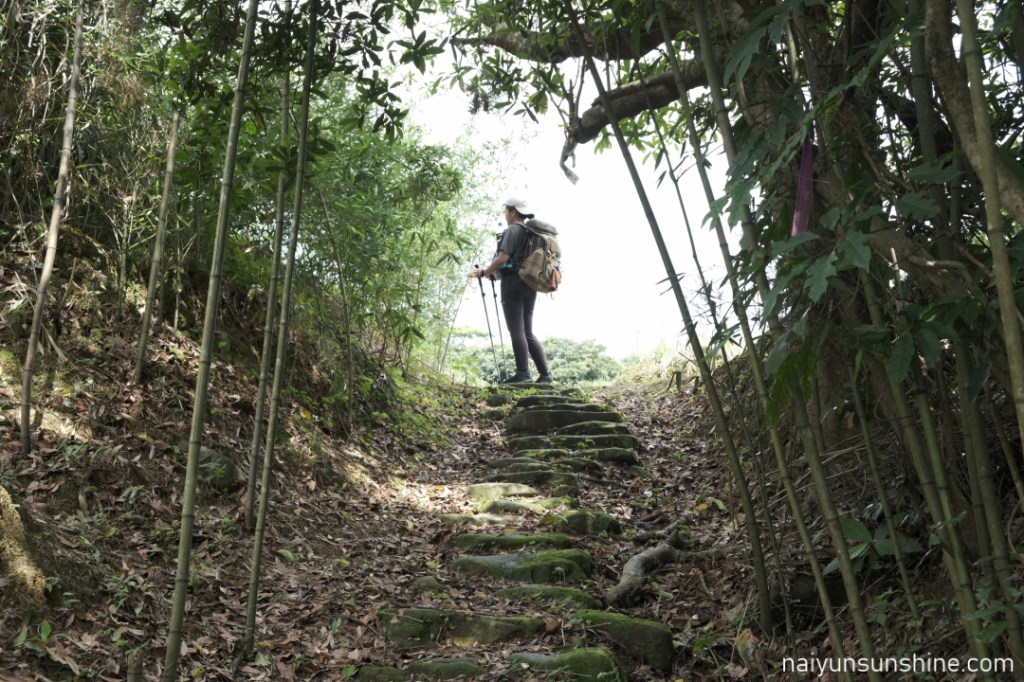 往下之後會經過一小段舊石階遺址,在地名為「百二崁階梯」,以單顆塊石疊砌為特色,先人修築後隨著時間一度被土石掩沒,現以手作精神的手法重現古石階的原貌,遙想先人開路的用心及歷史回憶。