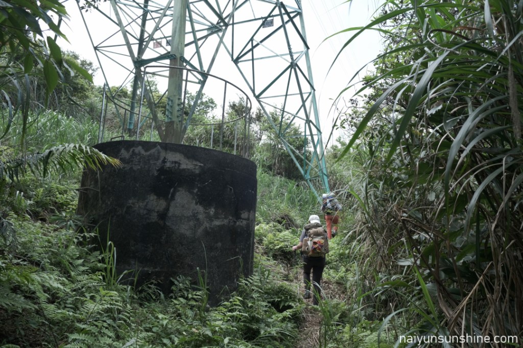 13:29 這裡是錯誤的路線,經過兩個電塔,還在電塔旁午休吃了午餐,還好發現一直沒有經過舊石階遺址,趕快回頭,不然差點爬上南草山,差點就要走回牡丹去了.正確的路線不會經過電塔.