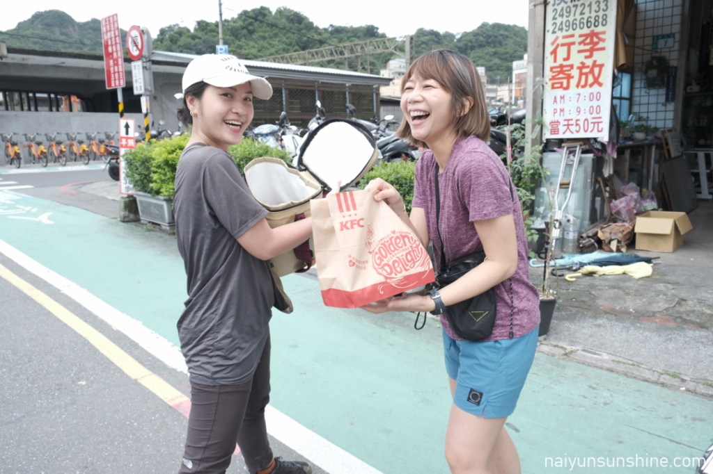 抵達九份太開心,忘記後面還有一段路要走,在老街買了5個草仔粿和5個芋粿"ㄎ一ㄠ",背起來實在超有存在感,超級不輕量化.