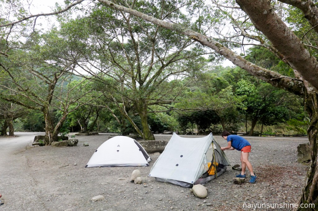 不然就要像我一樣用大石頭固定. 剛好我們紮營的這一天風很大,不知道是不是剛好有颱風的關係? 總之,沒風的話還行,風大的話,需要一點技巧才能一覺到天亮.