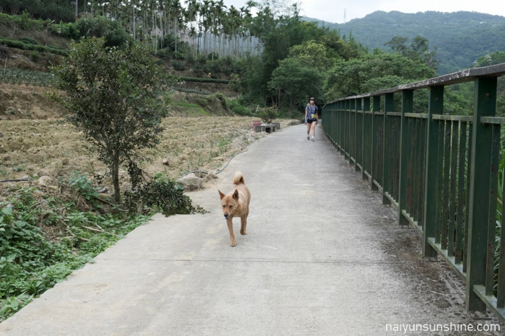 13:50 剛才過北宜公路的時候,從坪林鄉茶業產銷班的附近出現了一位新夥伴加入我們的旅途,這隻狗狗一直走在我們前方帶路,不時回頭等我們跟上.