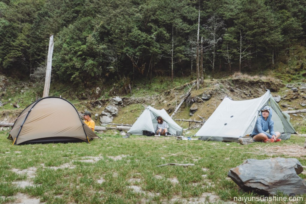 營地的風會從水源處吹來,正對水源的那一側風比較大,怕冷的人可以紮右側(靠近往小關山陡上路線的那一側).