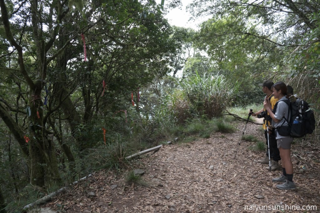 15:55回到林道叉路,取左下切,走跟上山一樣的路線. 樹上有超過10個布條,應該不會錯過.