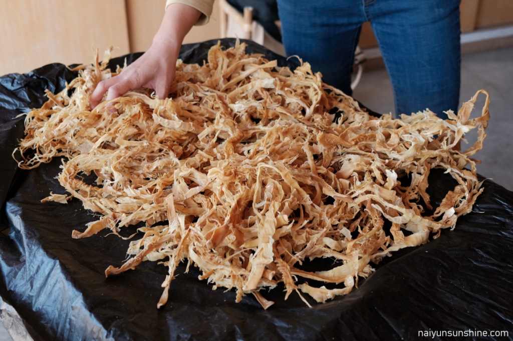曬乾的筍,準備撒鹽巴,全天然不加防腐劑.弟弟說家裡以前是做筍子.民國91年才轉作竹炭.