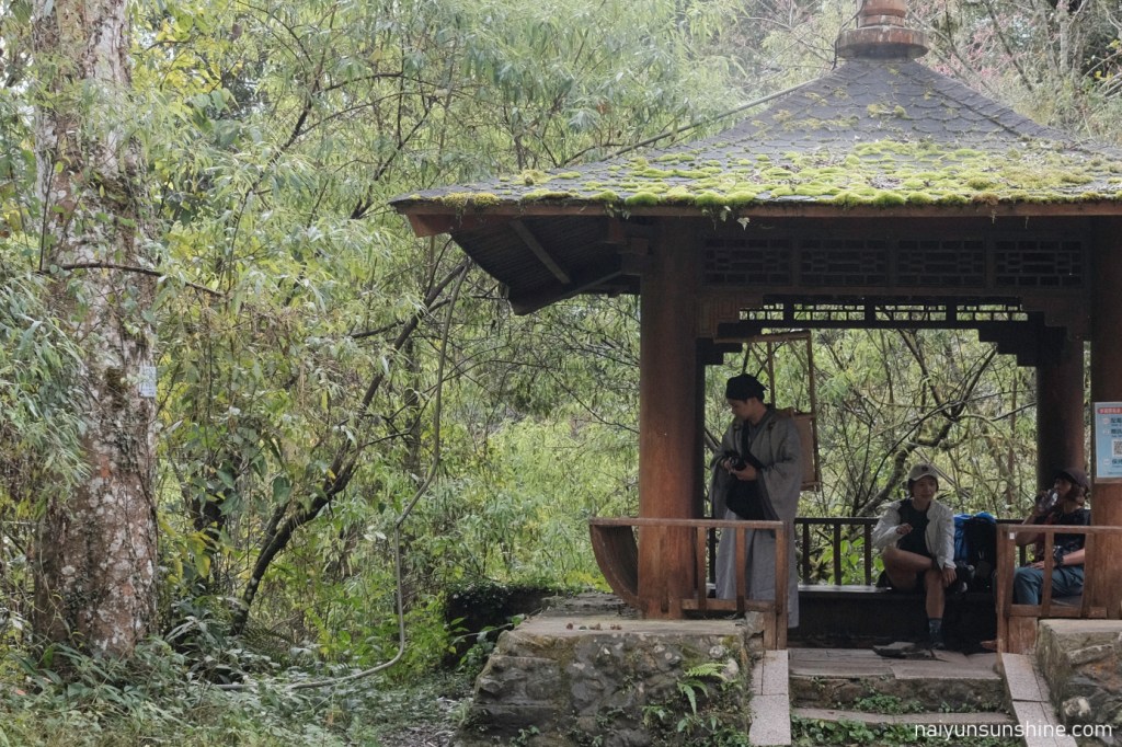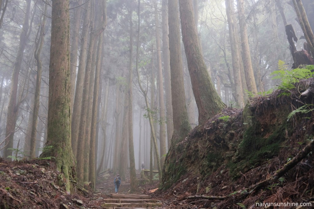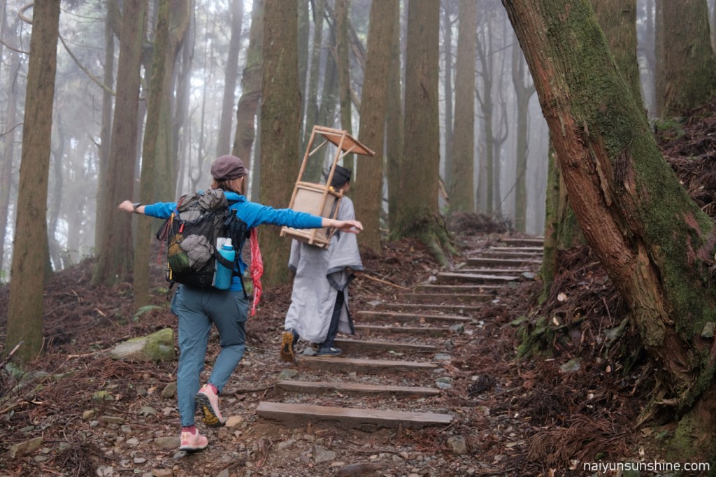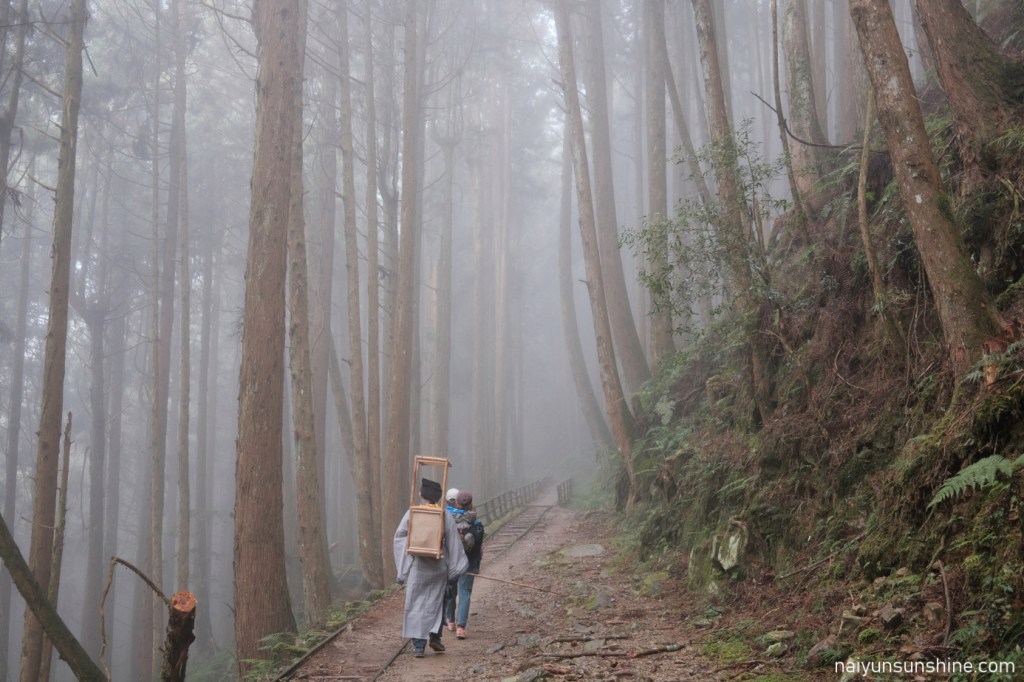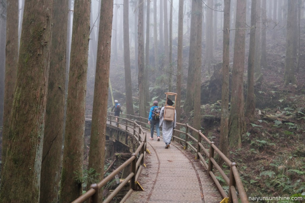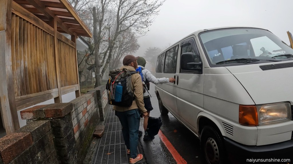 平日遇上下雨天,攔車變得比較困難.於是我們選擇聯繫接駁,省去約8公里的路程,早點前往阿里山森林遊樂區的住宿地點.