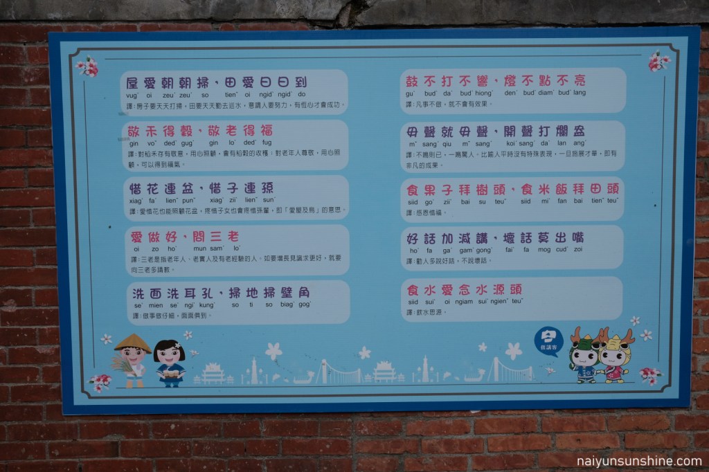 三坑老街的入口掛了這張客語教學,不知道這趟8天的健行能夠學會幾句呢.