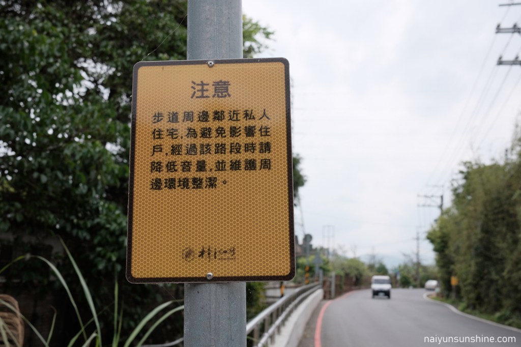 樟之細路行經不少民宅周遭,一路上會看到許多提醒的告示牌.經過時記得降低音量,垃圾自行帶走,以共同維護樟之細路徒步者的形象.
