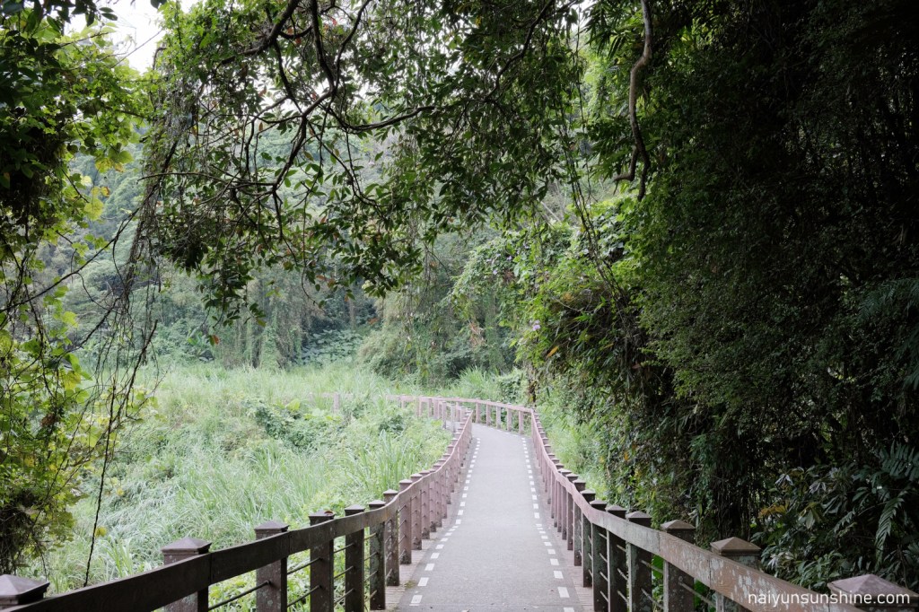 離開三坑自然生態公園,跟著樟之細路的指標和布條,續行三坑子自行車道.