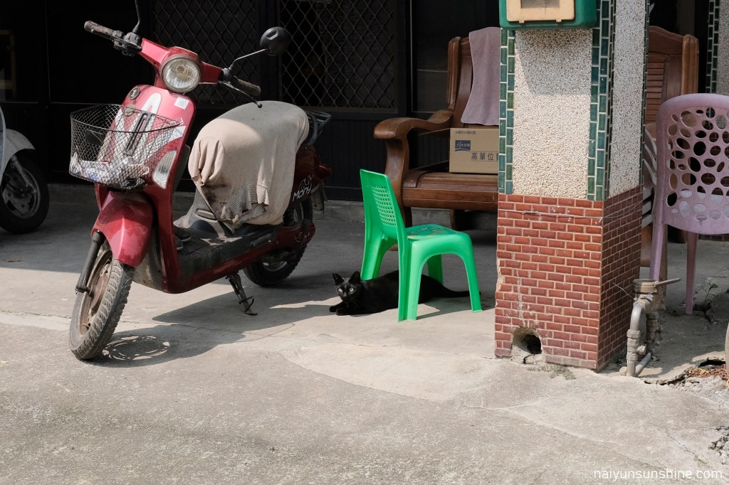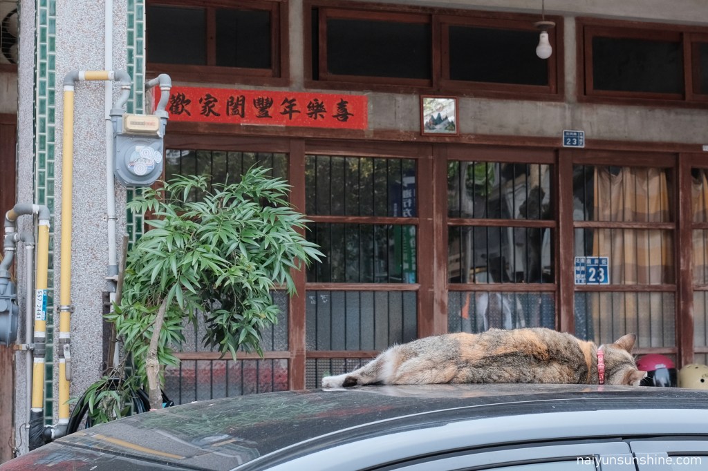 北埔街上曬太陽的三花貓(拖慢了我們前進的腳步)