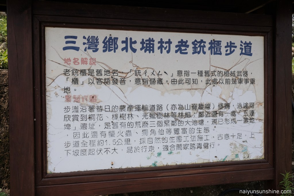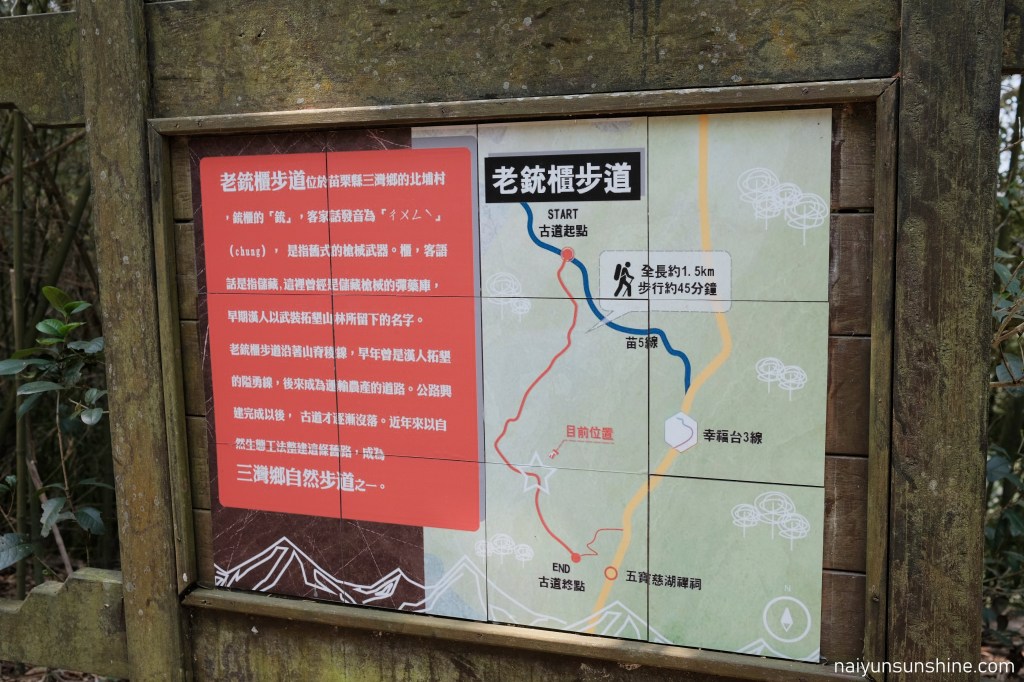 路線安排:三灣→龍峎頂步道→老銃櫃步道→二寮坑山徑→紙糊古道→明德水庫